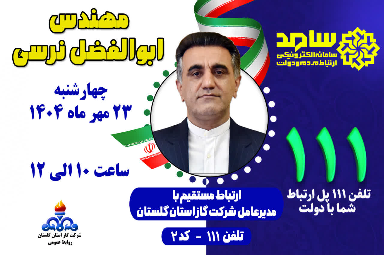در همین راستا هم استانی های عزیز در هرنقطه از استان می توانند سئوالات مورد نظر خود را پیرامون مباحث گازرسانی، خدمات رسانی ، نصب انشعاب ، اشتراک پذیری، امداد رسانی، اداری و موارد مشابه دیگر و همچنین نقطه نظرات و یا پیشنهادات خود را با برقراری ارتباط با شماره تماس 111 کد 2 با مدیرعامل گاز گلستان مطرح نموده تا بصورت مستقیم پاسخ های خود را دریافت نموده و راهنمایی لازم ارائه خواهد شد.